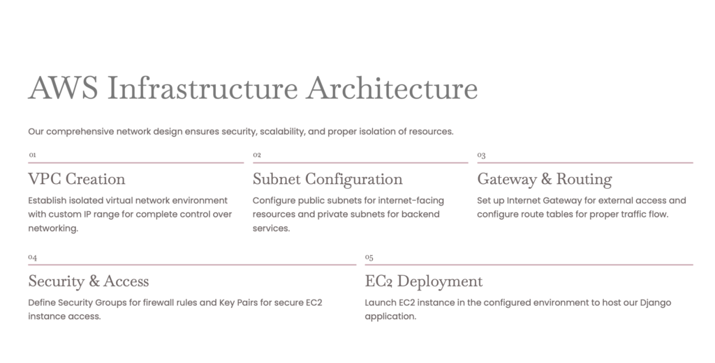 - Infrastructure: AWS (VPC, Subnets, EC2, Security Groups, IAM) via Terraform